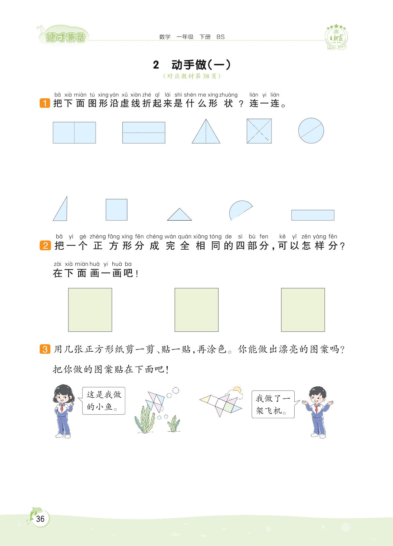 2022下册一年级数学北师版 第四单元 有趣的图形 ——2 动手做(一)