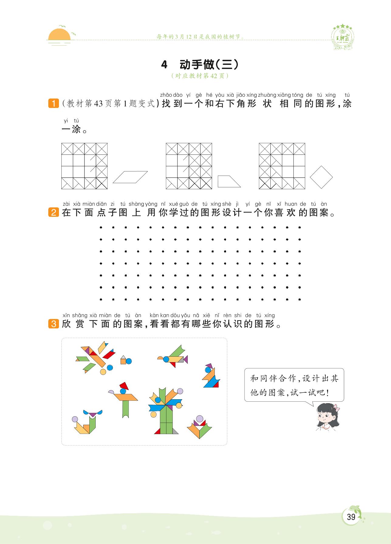 2022下册一年级数学北师版 第四单元 有趣的图形 ——4 动手做(三)
