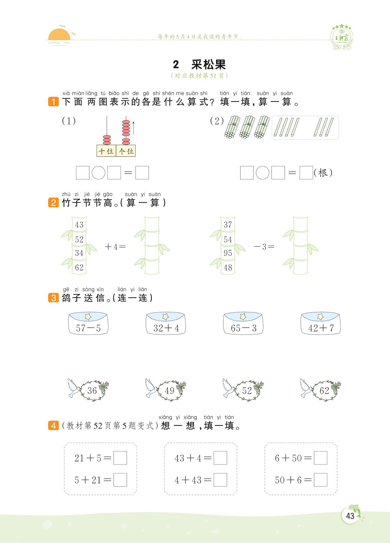 2022下册一年级数学北师版 第五单元 加与减(二)——2 采松果
