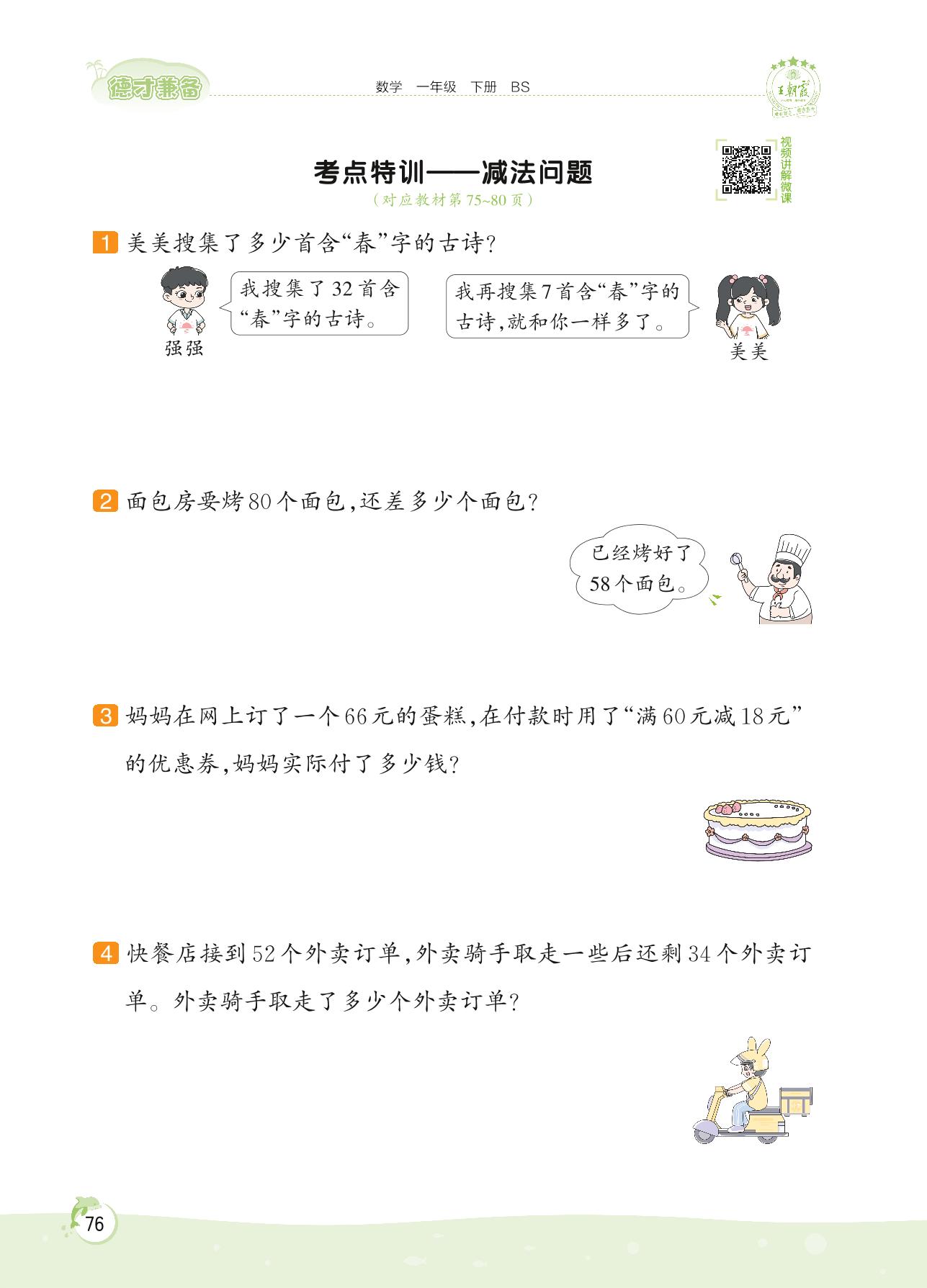 2022下册一年级数学北师版 第六单元 加与减(三)——考点特训 减法问题