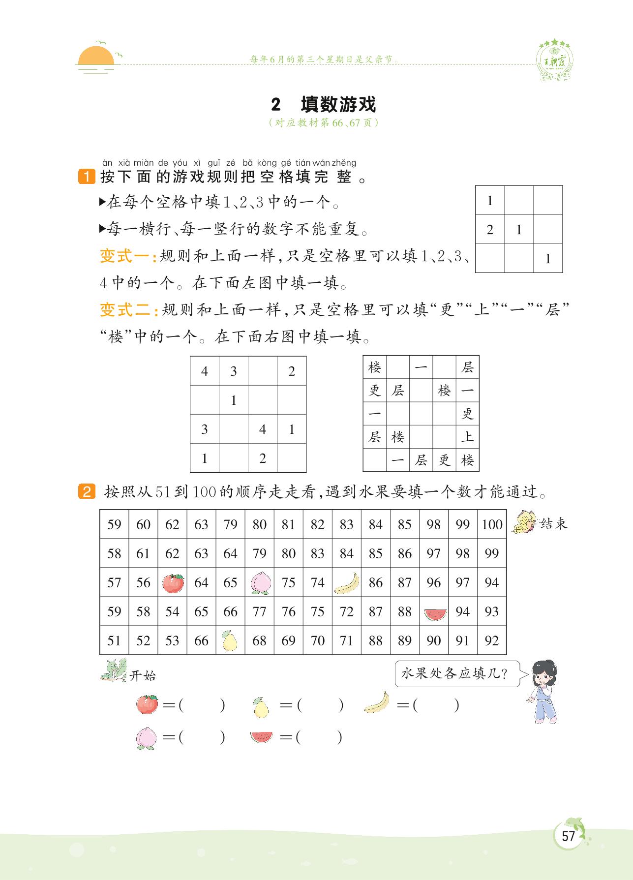2022下册一年级数学北师版 数学好玩——2 填数游戏