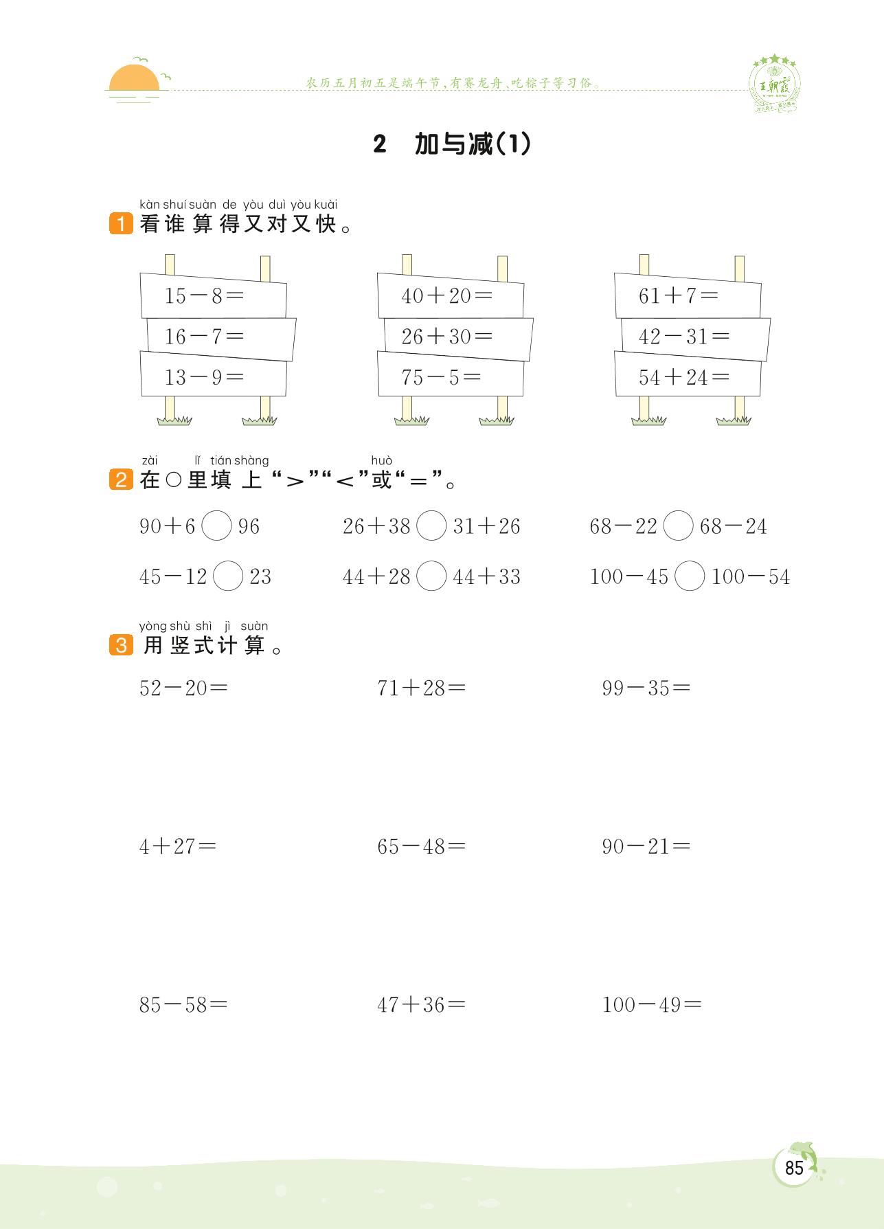 2022下册一年级数学北师版 总复习——2 加与减(1)