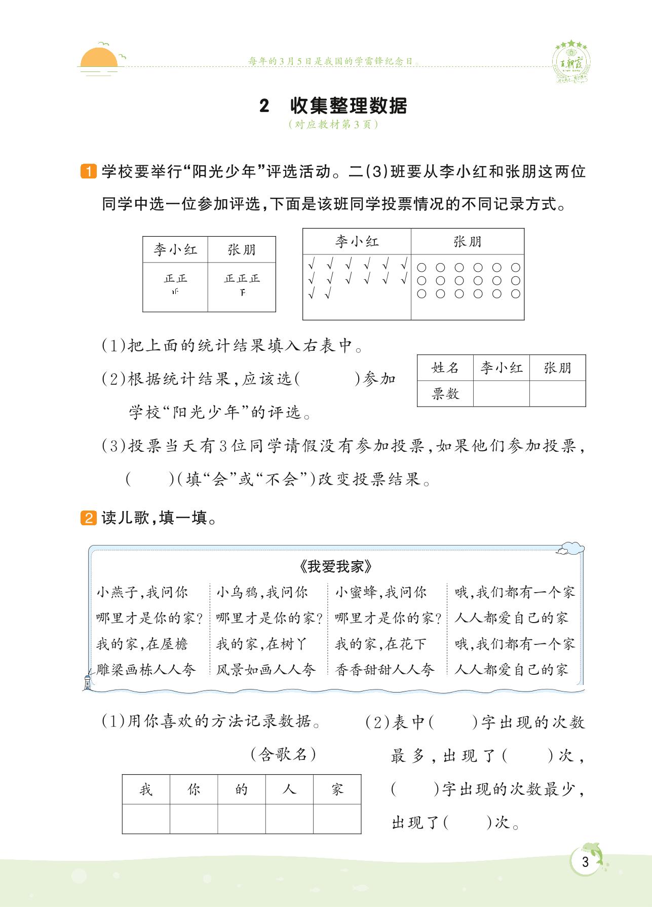 2022下册二年级数学人教版 第一单元 数据收集整理——2 收集整理数据