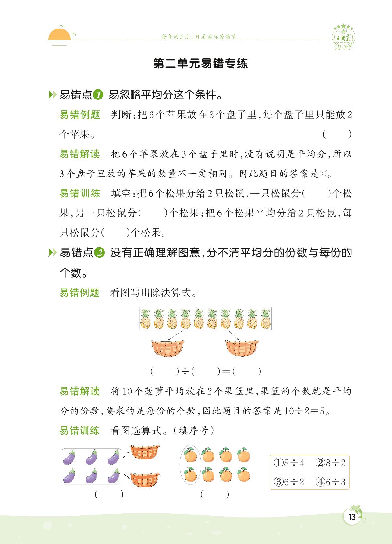 2022下册二年级数学人教版 第二单元 表内除法(一)——第二单元易错专练