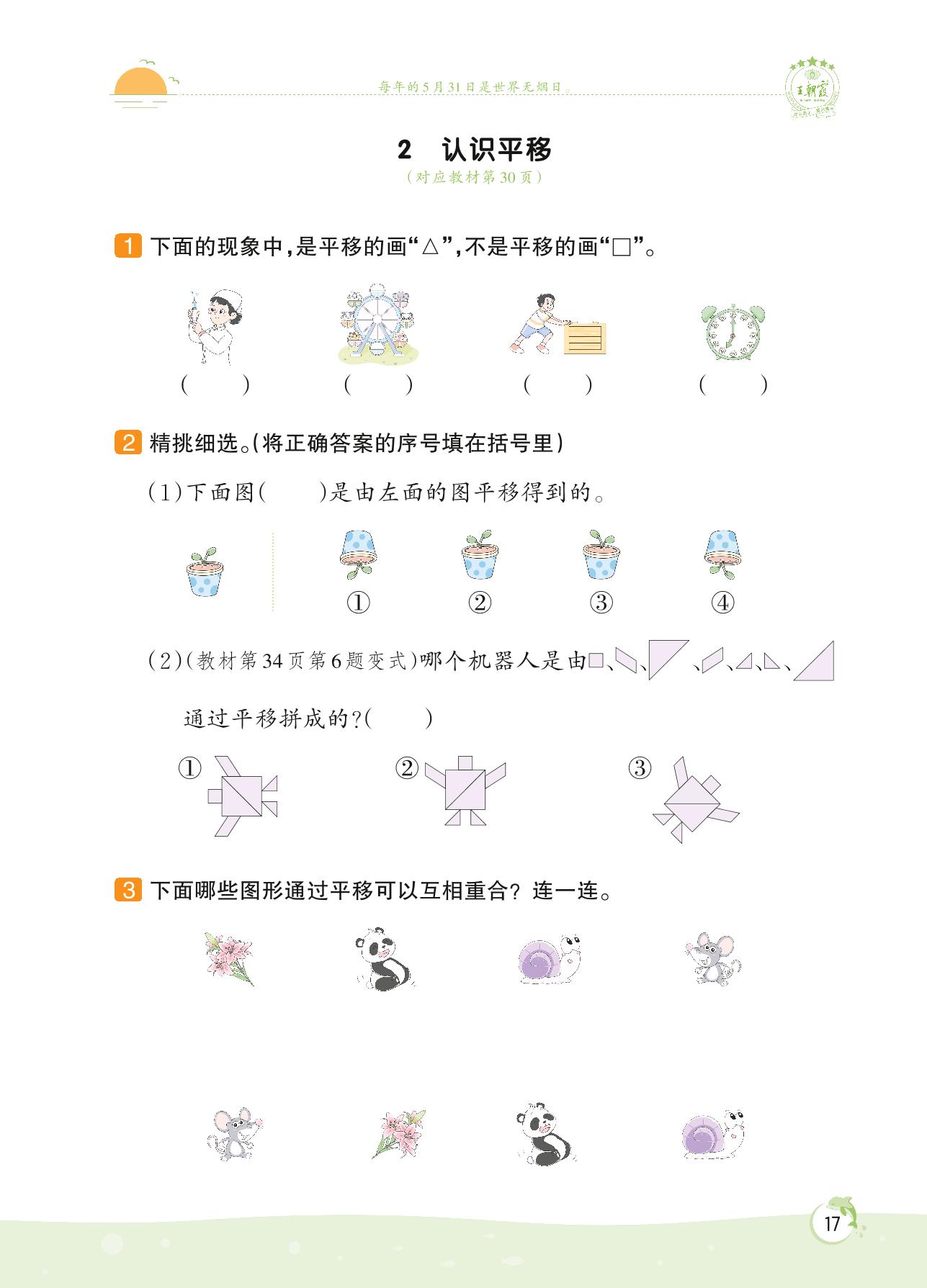 2022下册二年级数学人教版 第三单元 图形的运动(一)——2 认识平移