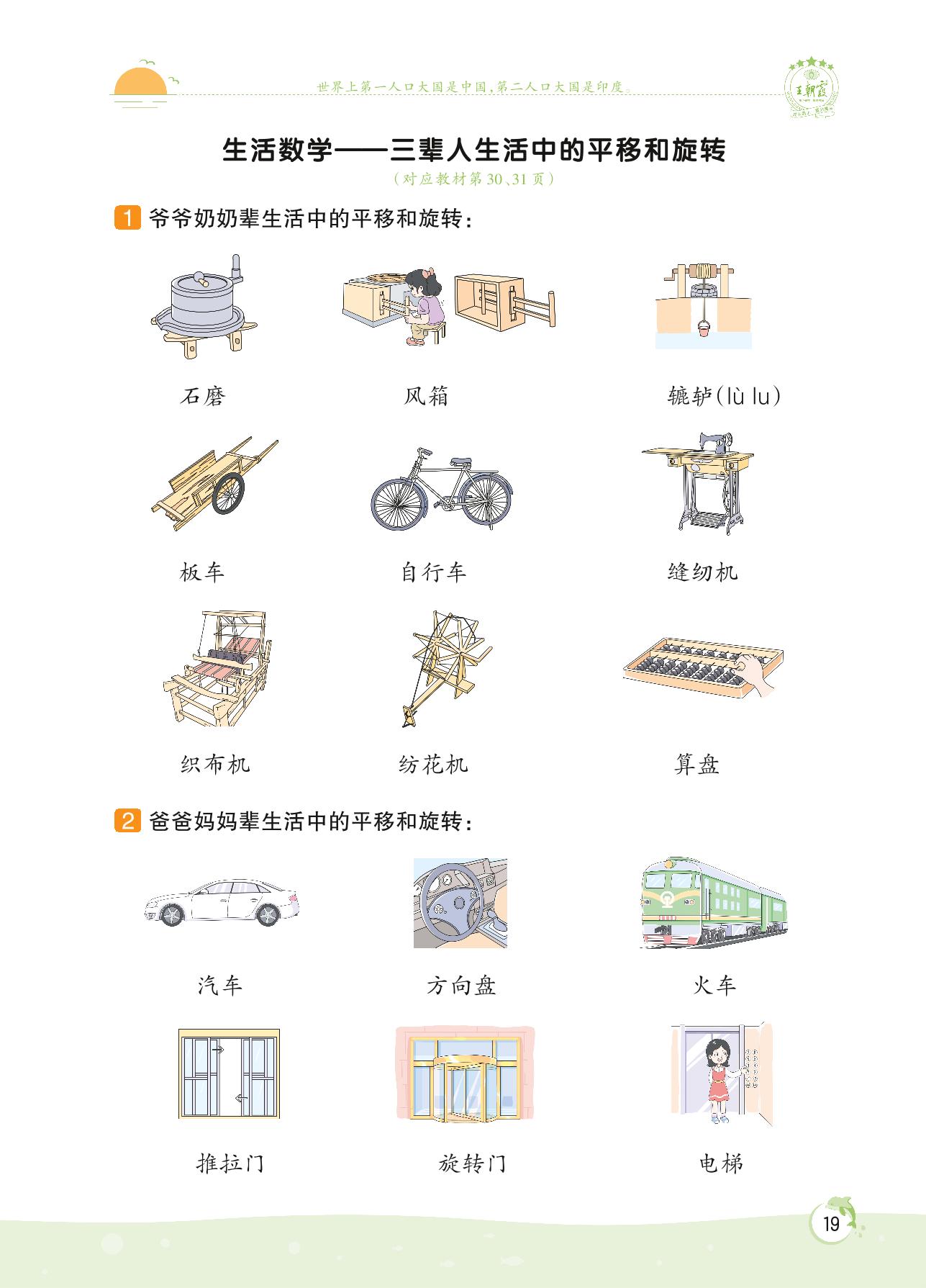2022下册二年级数学人教版 第三单元 图形的运动(一)——生活数学 三辈人生活中的平移和旋转