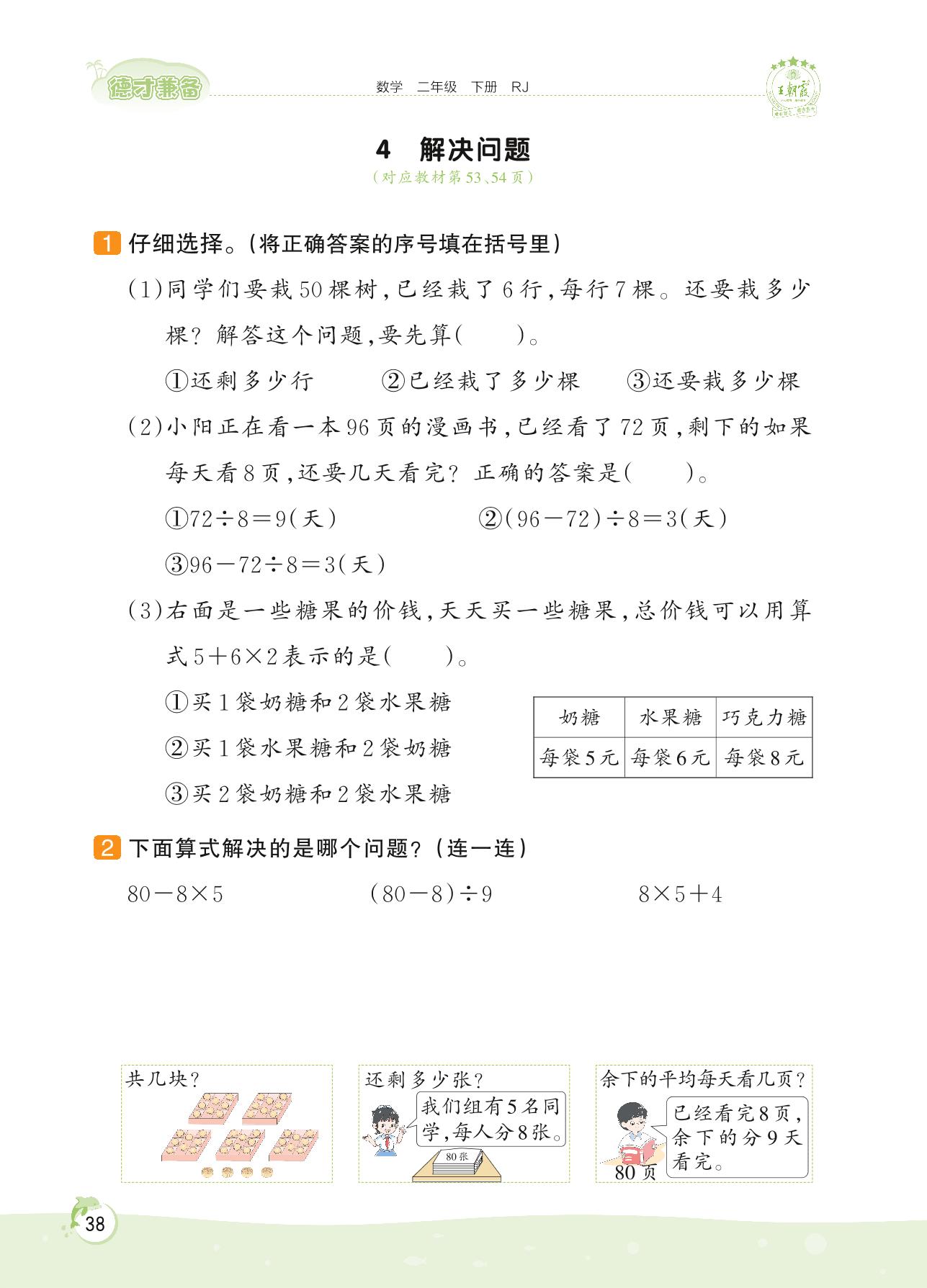 2022下册二年级数学人教版 第五单元 混合运算——4 解决问题