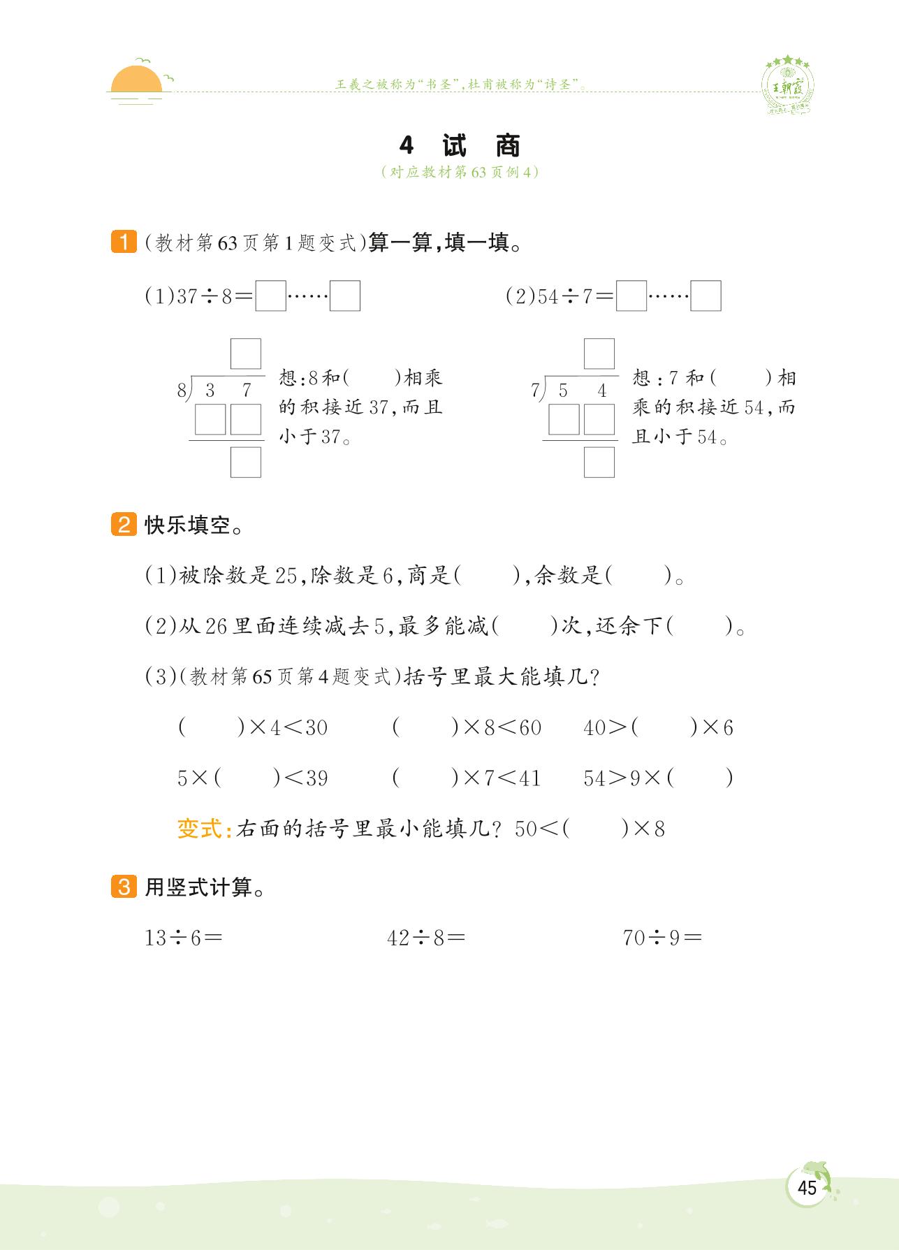 2022下册二年级数学人教版 第六单元 有余数的除法——4 试商