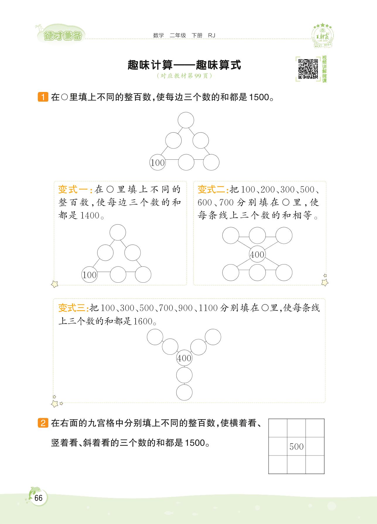 2022下册二年级数学人教版 第七单元 万以内数的认识——趣味计算 趣味算式