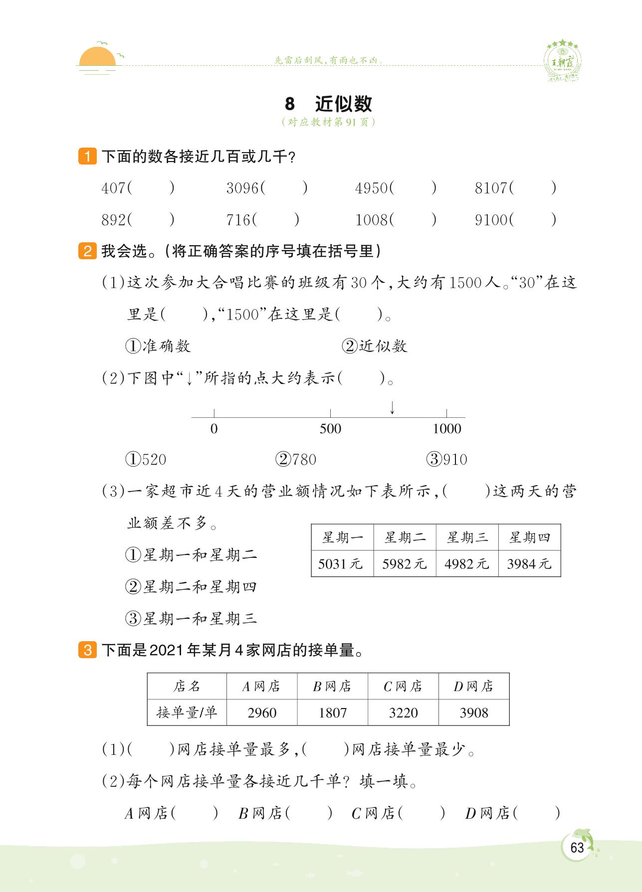 2022下册二年级数学人教版 第七单元 万以内数的认识——8 近似数