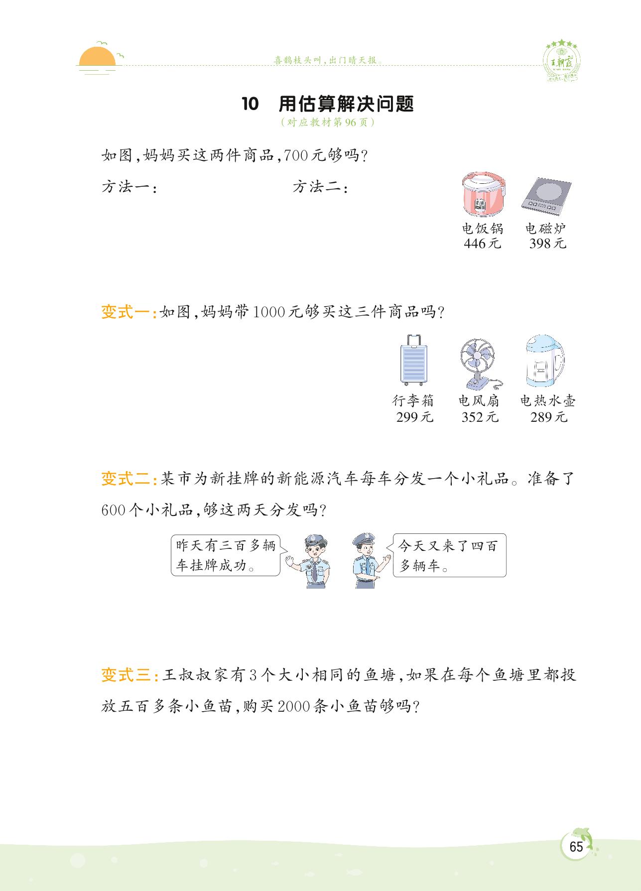 2022下册二年级数学人教版 第七单元 万以内数的认识——10 用估算解决问题