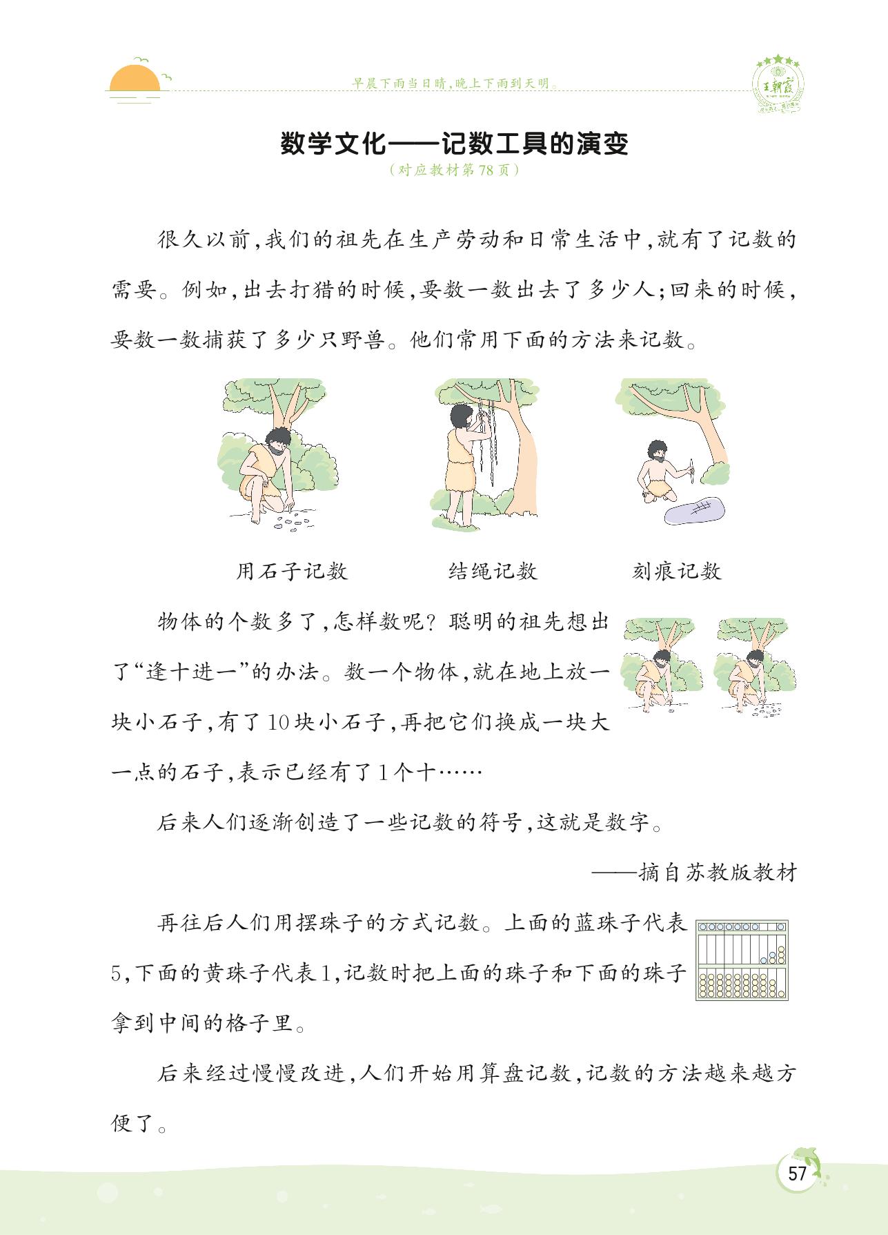 2022下册二年级数学人教版 第七单元 万以内数的认识——数学文化 记数工具的演变