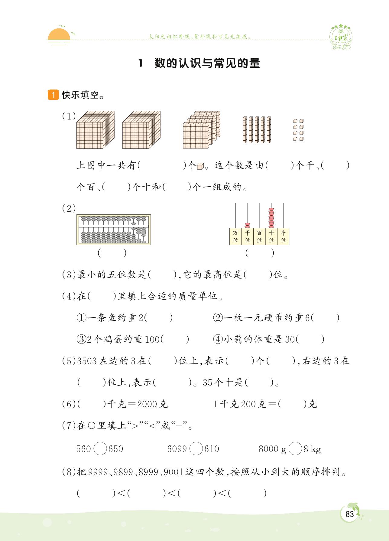 2022下册二年级数学人教版 第十单元 总复习——1 数的认识与常见的量