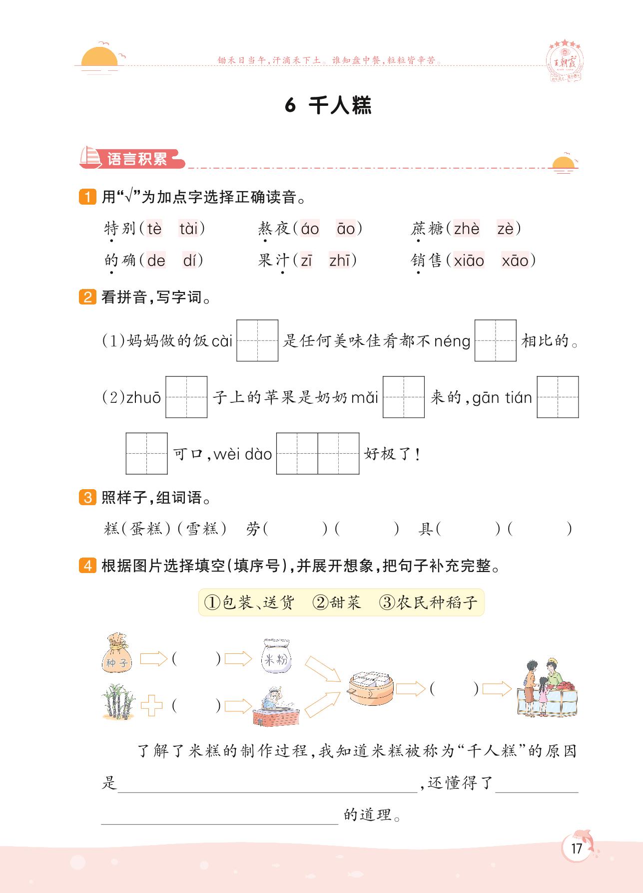 2022下册二年级语文人教版 第二单元 关爱——6 千人糕
