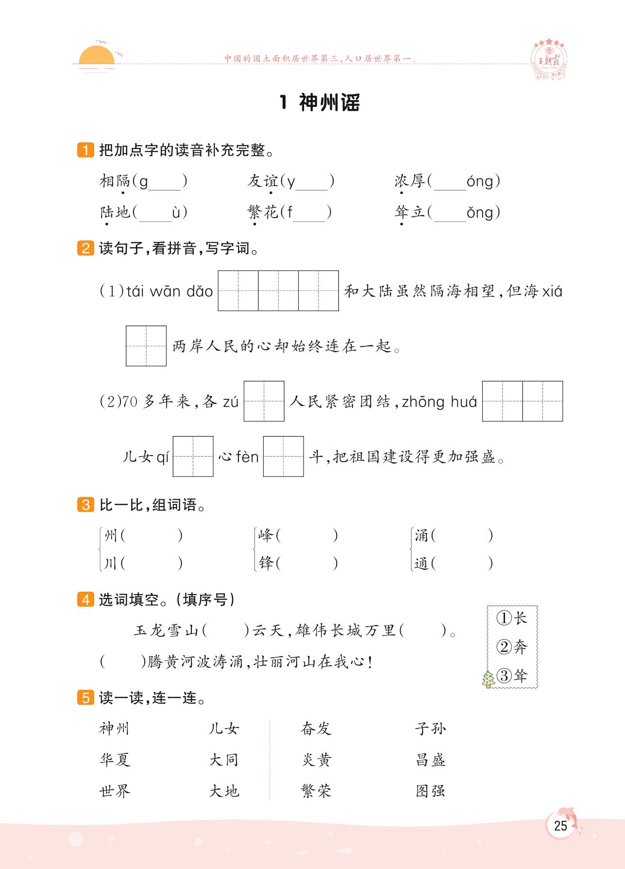 2022下册二年级语文人教版 第三单元 传统文化——1 神州谣