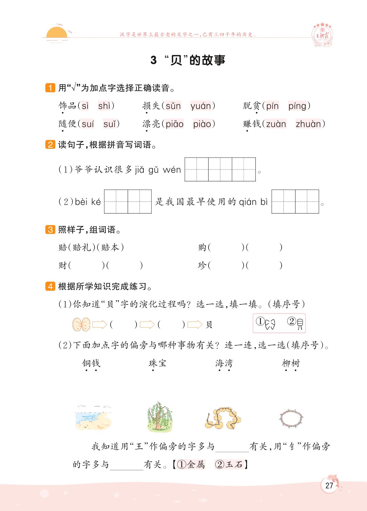 2022下册二年级语文人教版 第三单元 传统文化——3 “贝”的故事