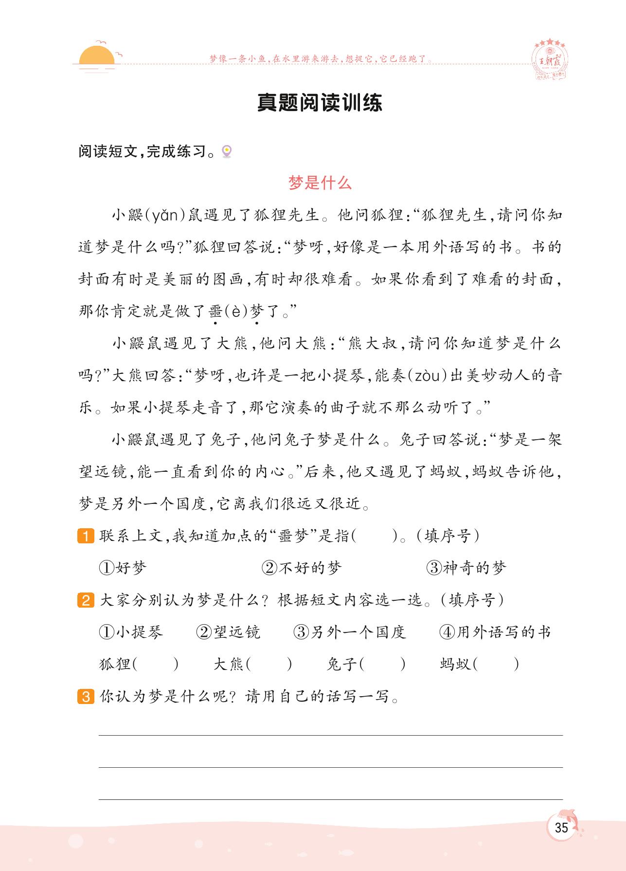 2022下册二年级语文人教版 第四单元 童心——真题阅读训练