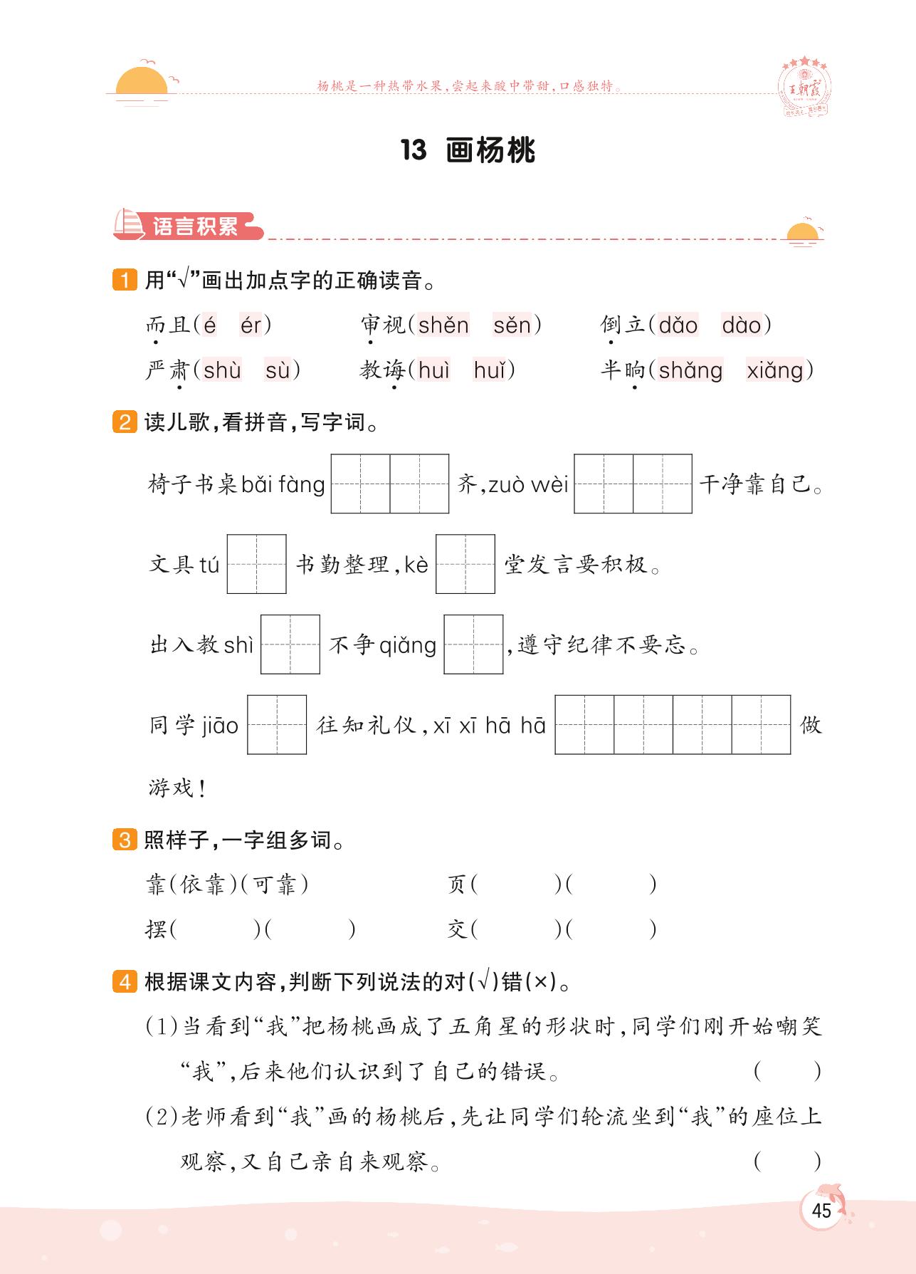 2022下册二年级语文人教版 第五单元 办法——13 画杨桃