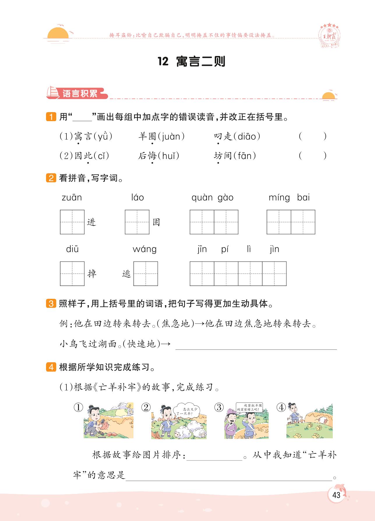 2022下册二年级语文人教版 第五单元 办法——12 寓言二则