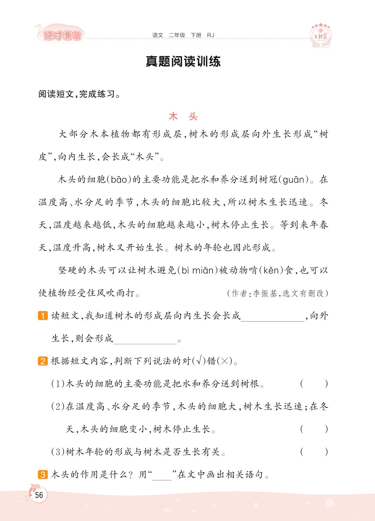 2022下册二年级语文人教版 第六单元 大自然的秘密——真题阅读训练