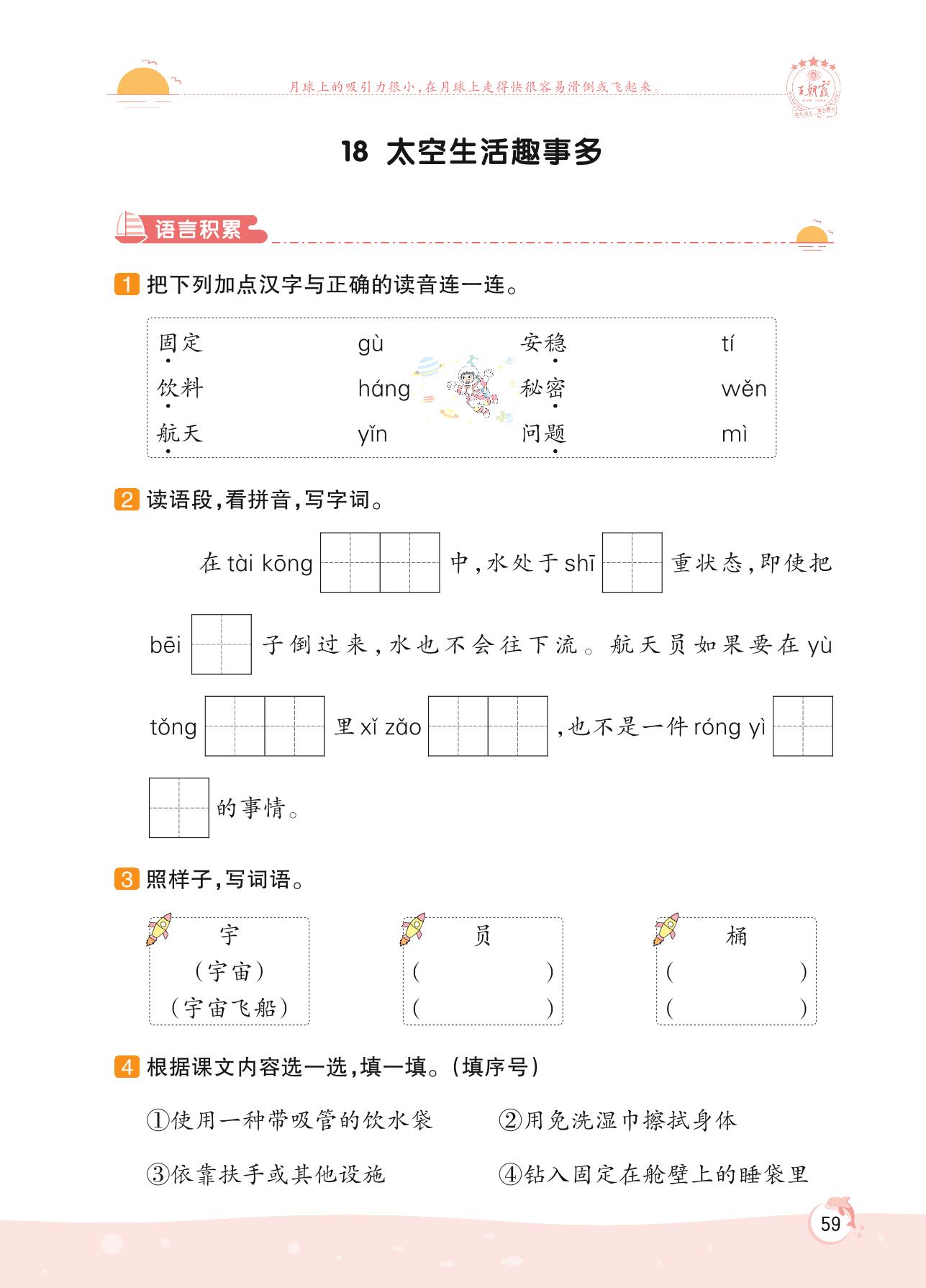 2022下册二年级语文人教版 第六单元 大自然的秘密——18 太空生活趣事多