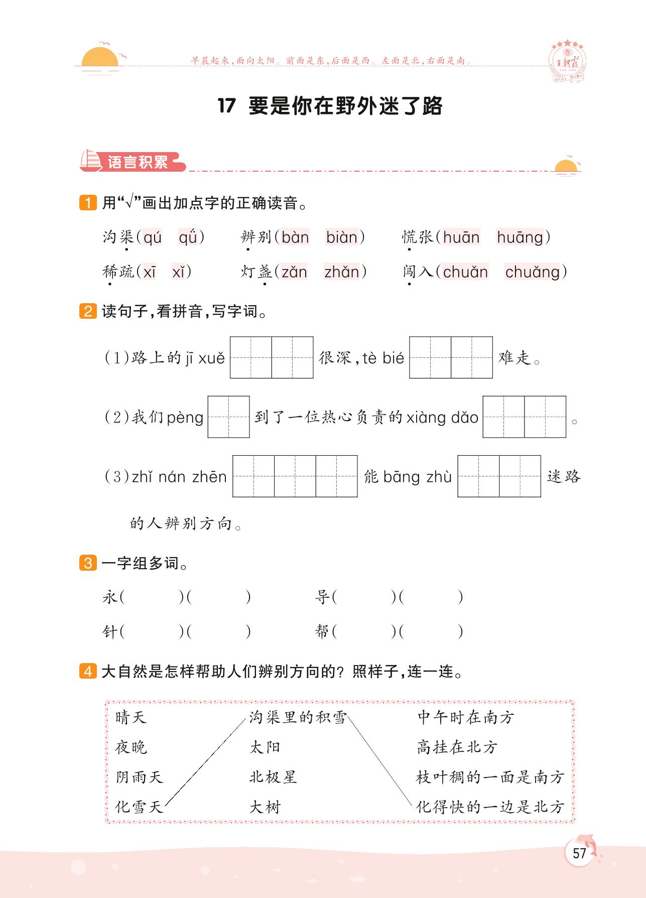 2022下册二年级语文人教版 第六单元 大自然的秘密——17 要是你在野外迷了路