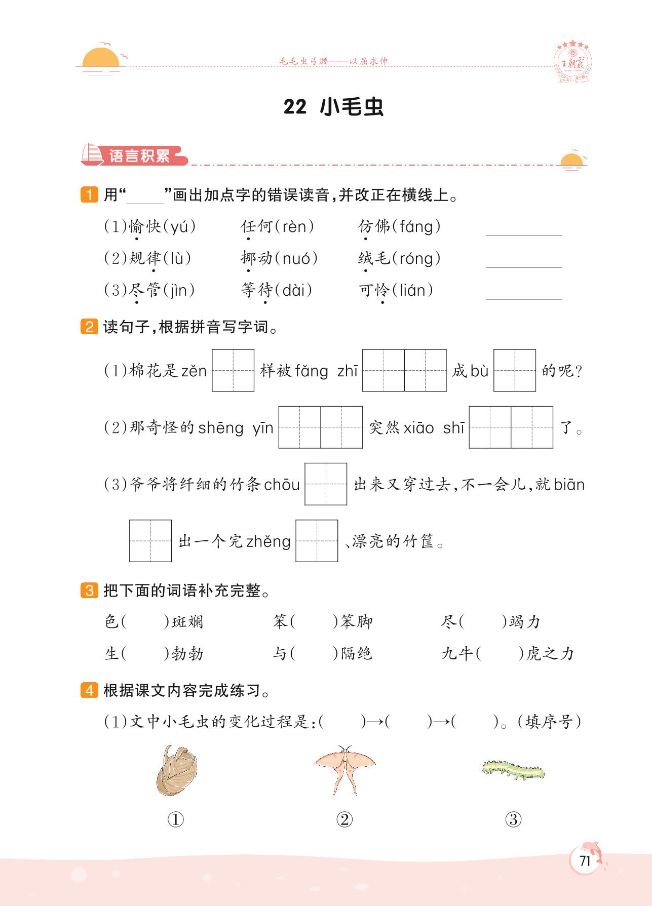 2022下册二年级语文人教版 第七单元 改变——22 小毛虫