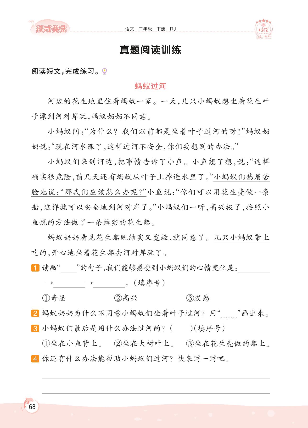 2022下册二年级语文人教版 第七单元 改变——真题阅读训练