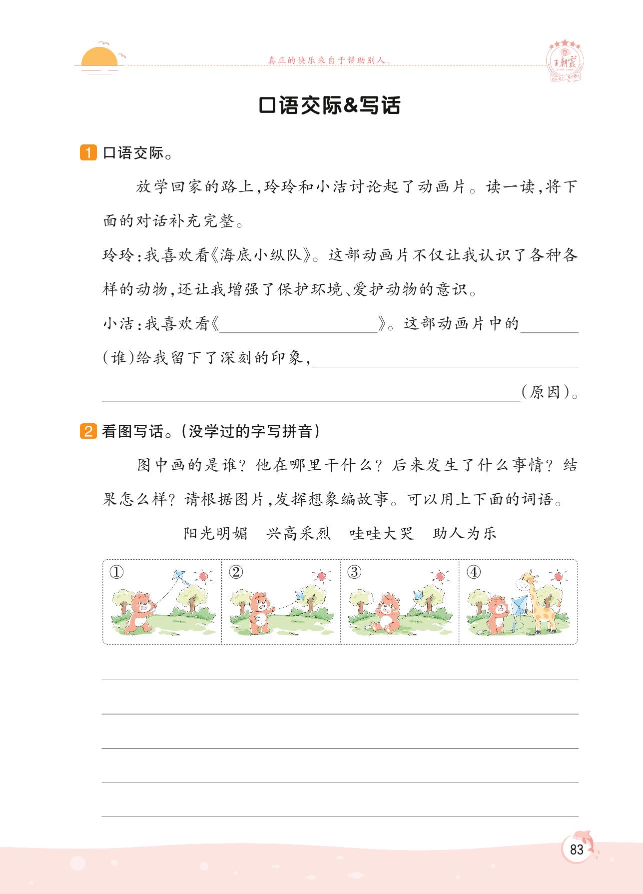2022下册二年级语文人教版 第八单元 世界之初——口语交际&写话