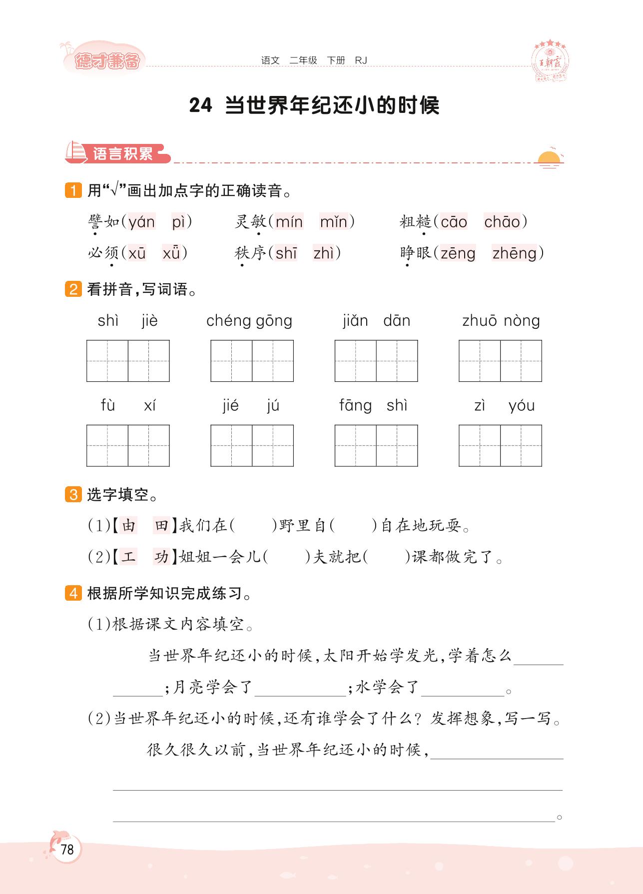 2022下册二年级语文人教版 第八单元 世界之初——24 当世界年纪还小的时候
