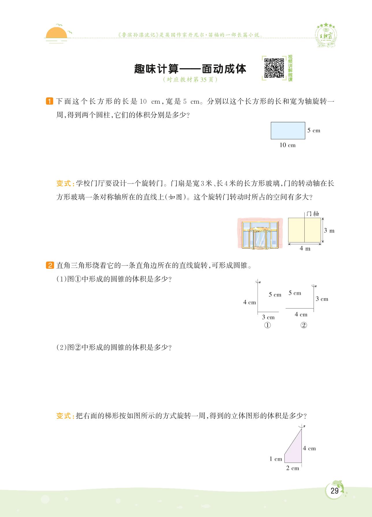 2022下册六年级数学人教版 第三单元 圆柱与圆锥——趣味计算 面动成体