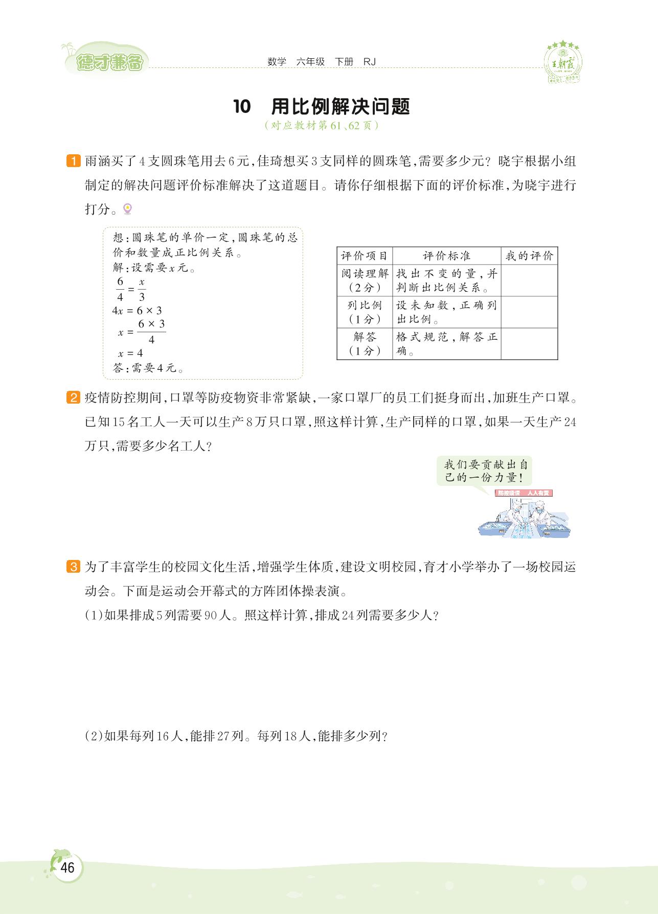 2022下册六年级数学人教版 第四单元 比例——10 用比例解决问题