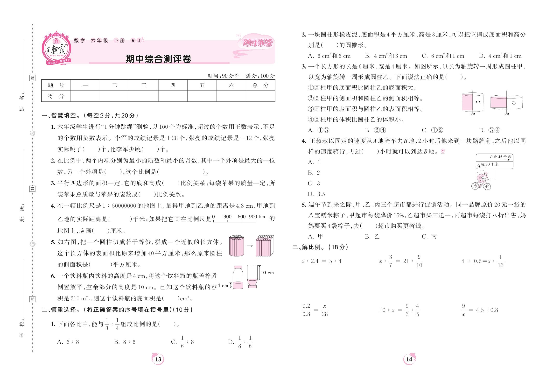 2022下册六年级数学人教版 期中综合测评卷_R220121112046405