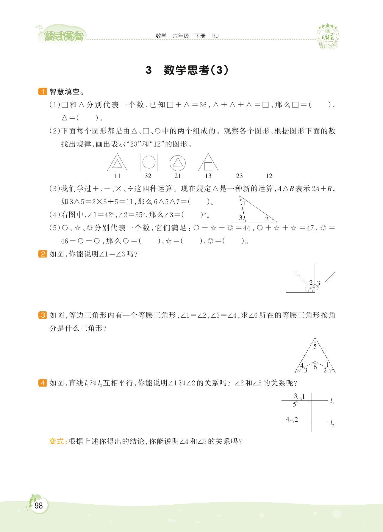 2022下册六年级数学人教版 第六单元 整理与复习——3 数学思考(3)