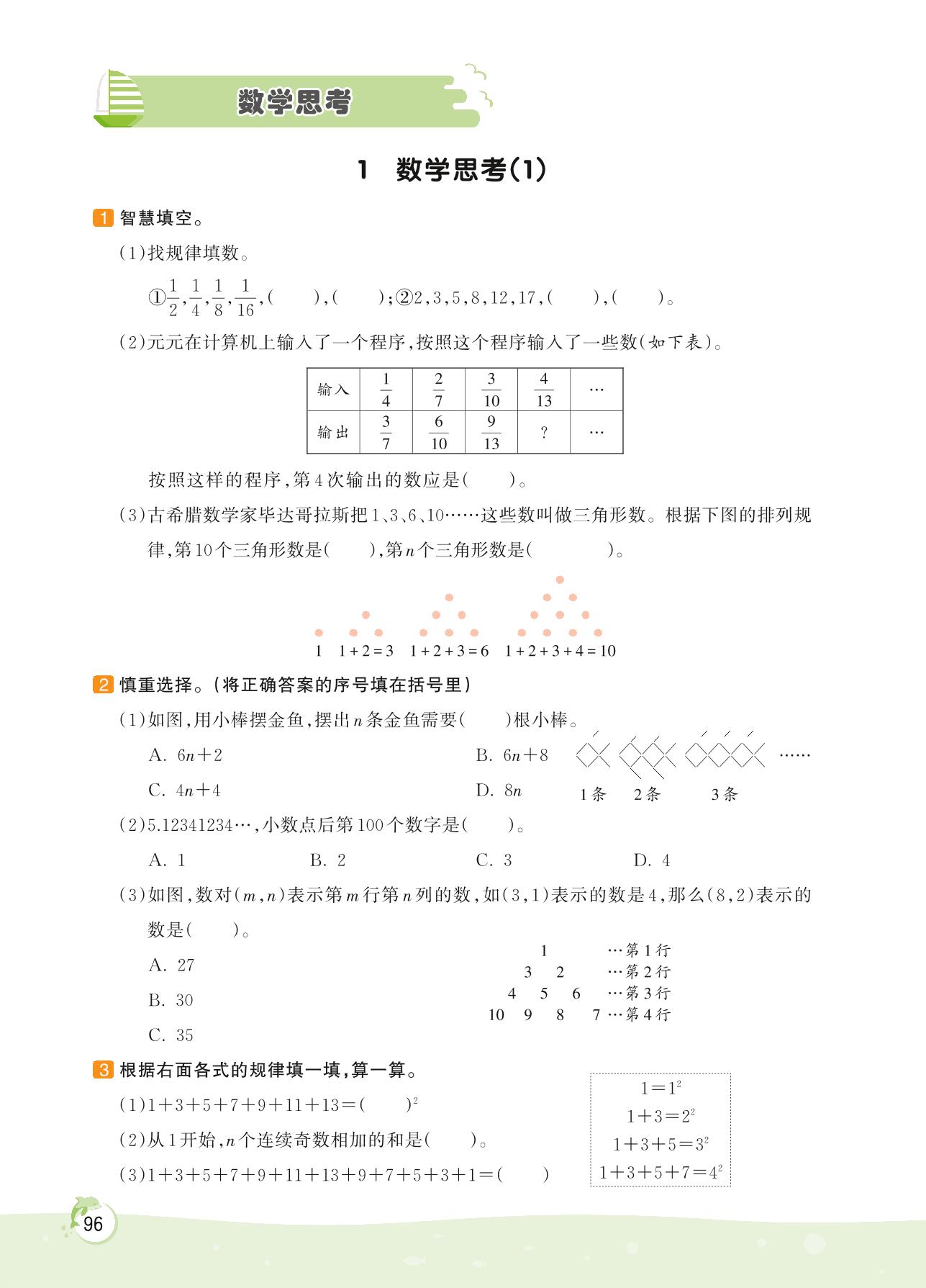 2022下册六年级数学人教版 第六单元 整理与复习——1 数学思考(1)