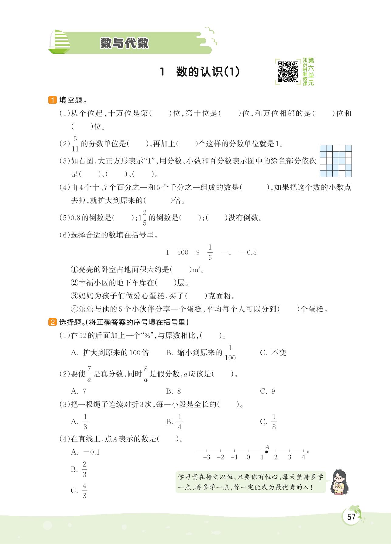 2022下册六年级数学人教版 第六单元 整理与复习——1 数的认识(1)