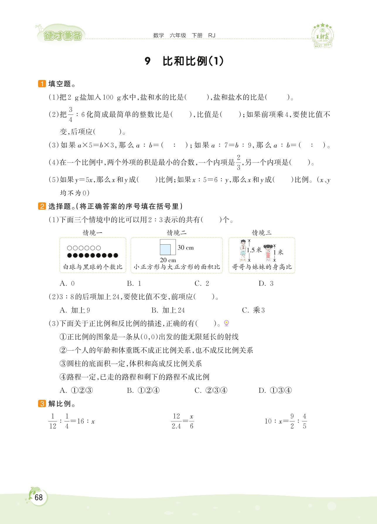 2022下册六年级数学人教版 第六单元 整理与复习——9 比和比例(1)
