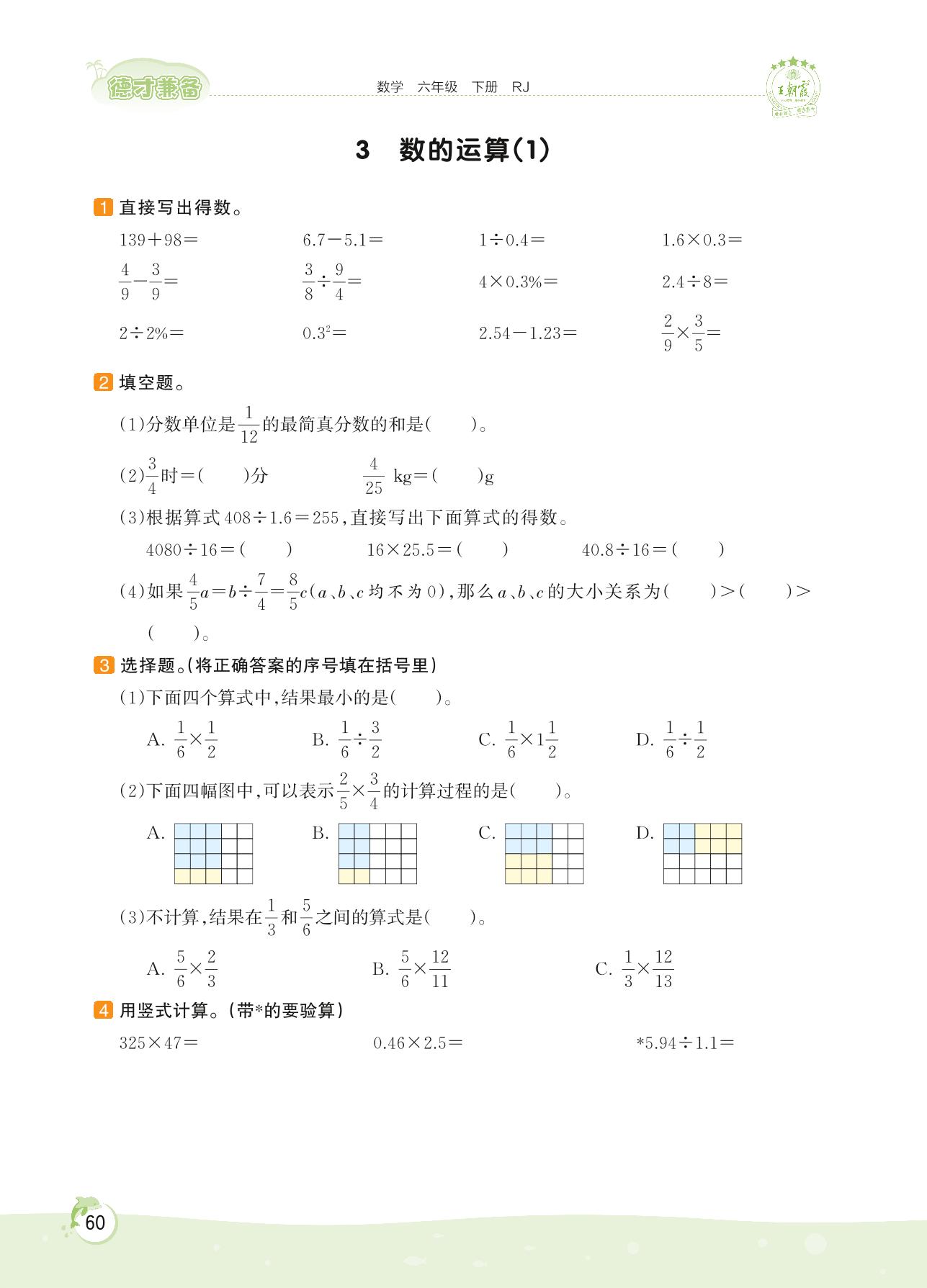 2022下册六年级数学人教版 第六单元 整理与复习——3 数的运算(1)