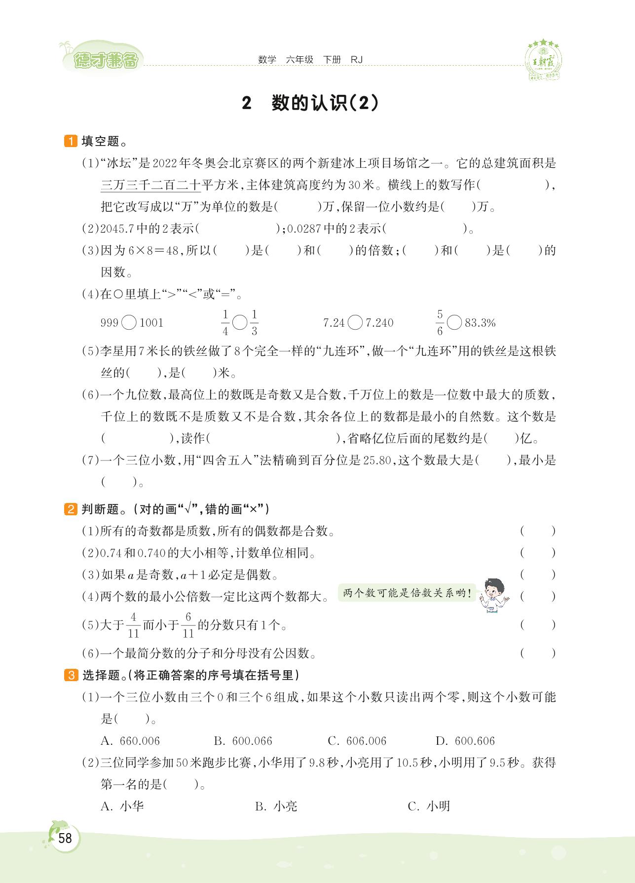 2022下册六年级数学人教版 第六单元 整理与复习——2 数的认识(2)