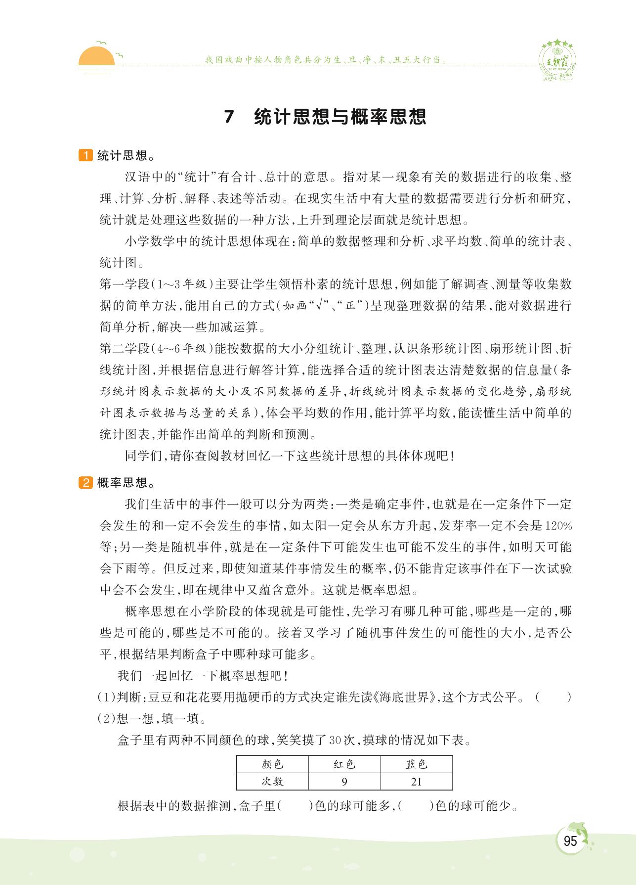 2022下册六年级数学人教版 第六单元 整理与复习——7 统计思想与概率思想