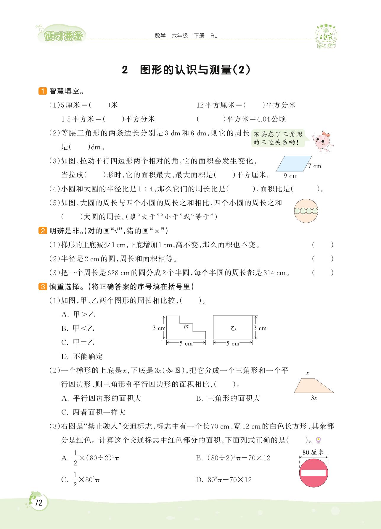 2022下册六年级数学人教版 第六单元 整理与复习——2 图形的认识与测量(2)