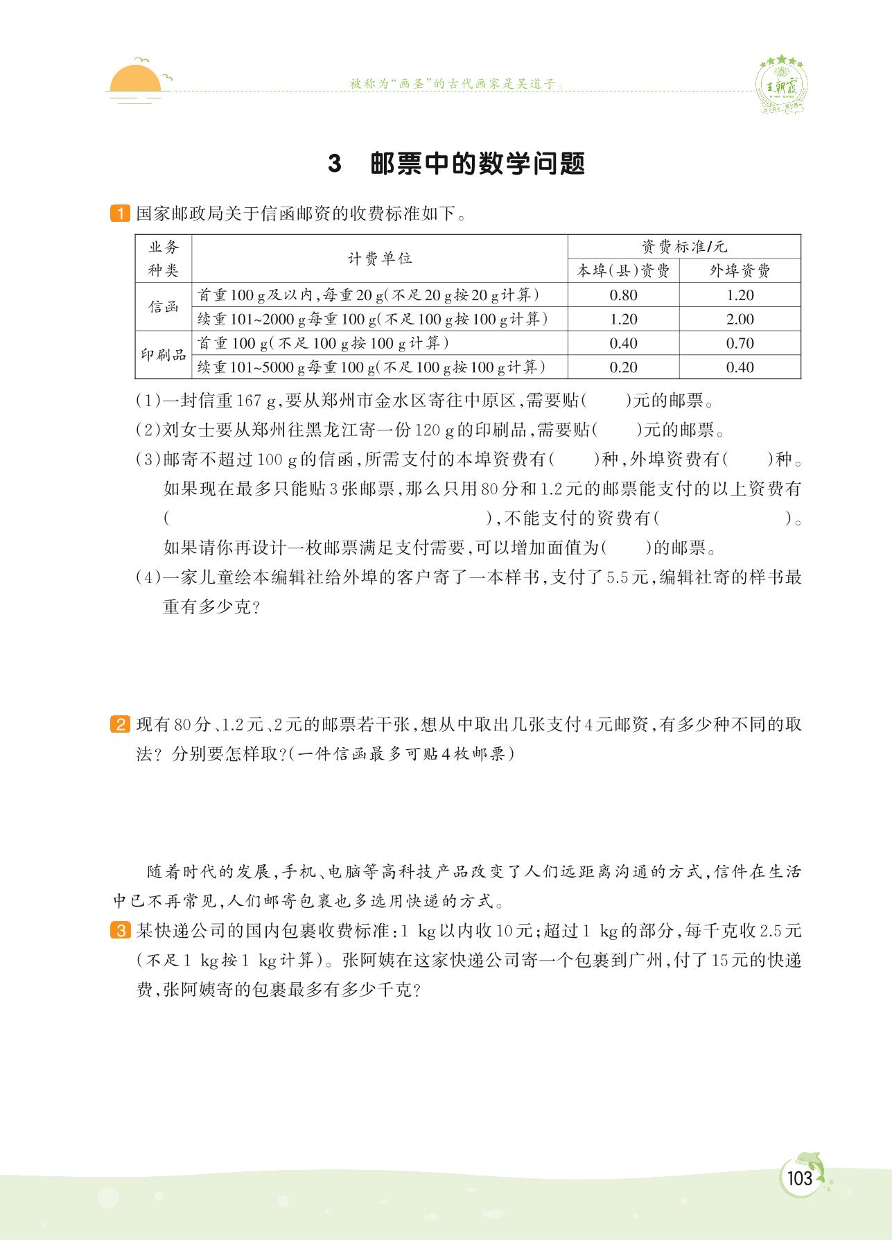 2022下册六年级数学人教版 第六单元 整理与复习——3 邮票中的数学问题