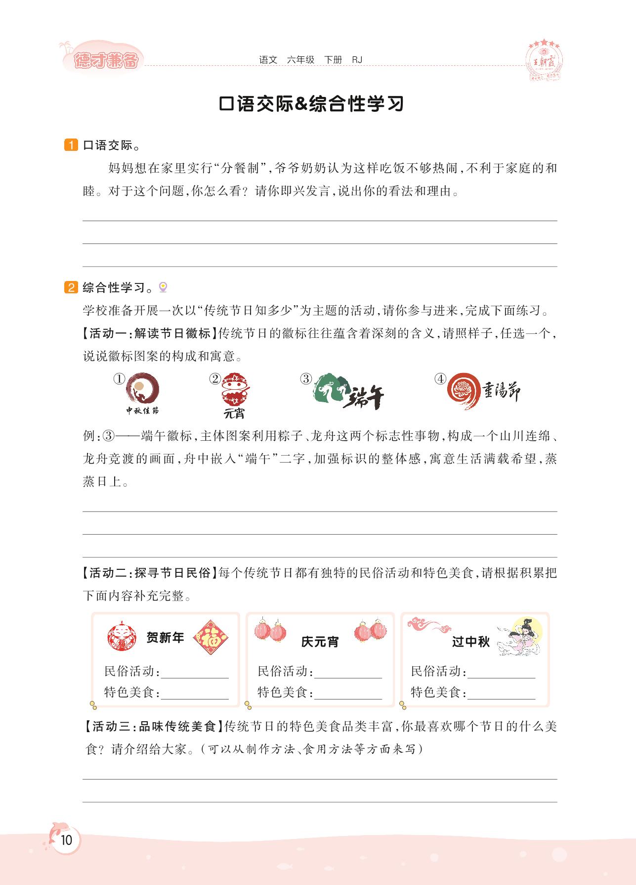 2022下册六年级语文人教版 第一单元 民风民俗——口语交际&综合性学习