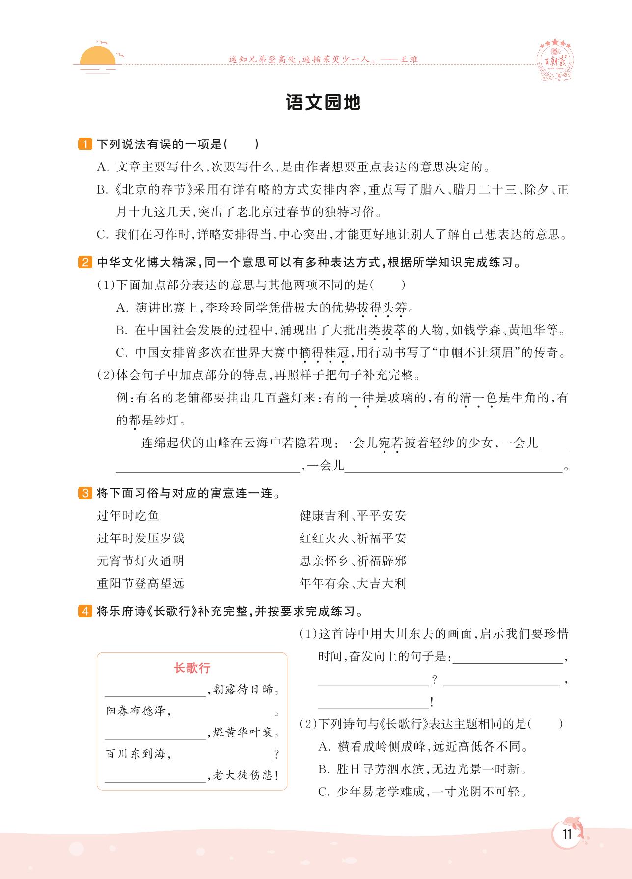 2022下册六年级语文人教版 第一单元 民风民俗——语文园地