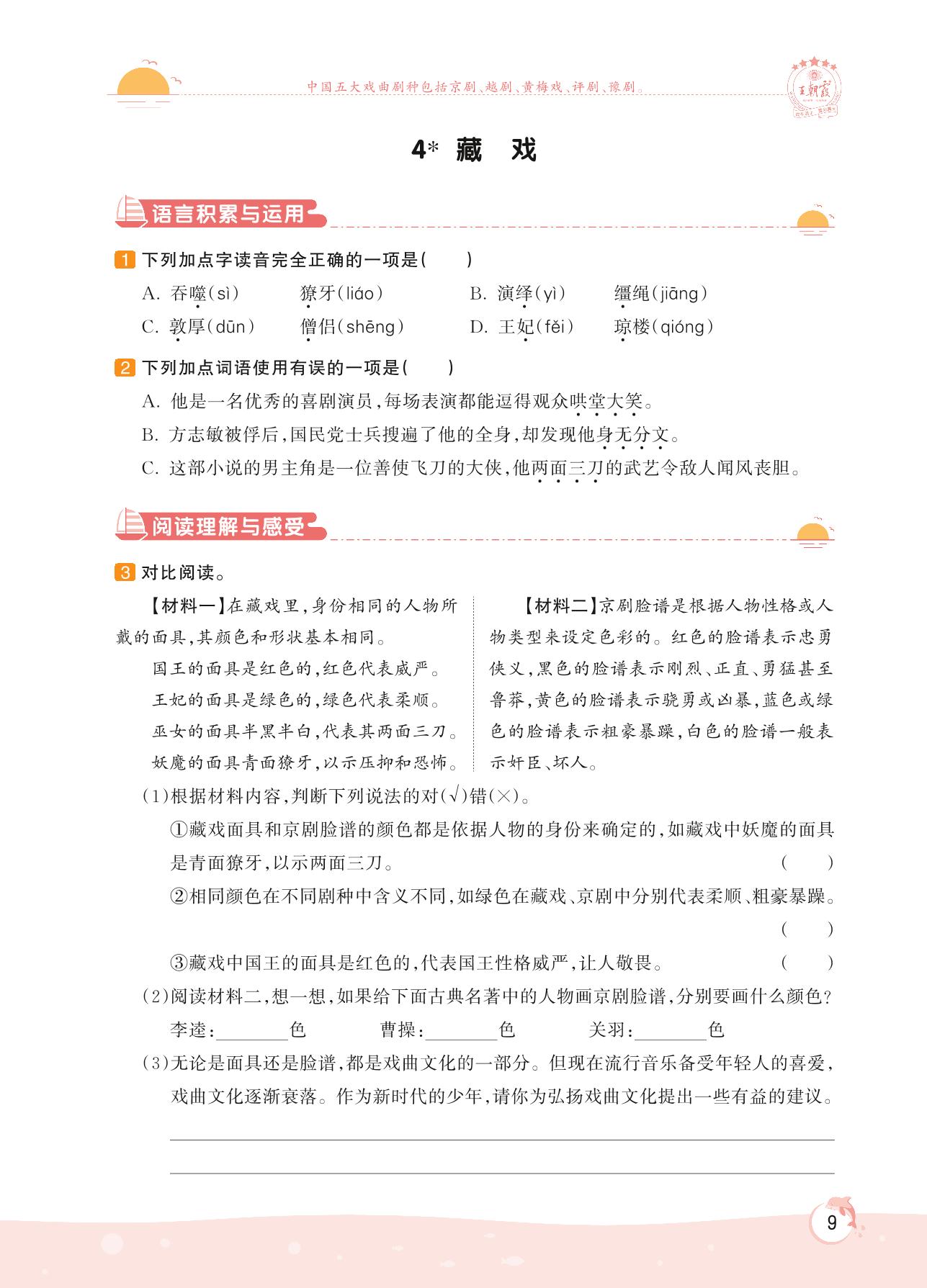 2022下册六年级语文人教版 第一单元 民风民俗——4 藏戏