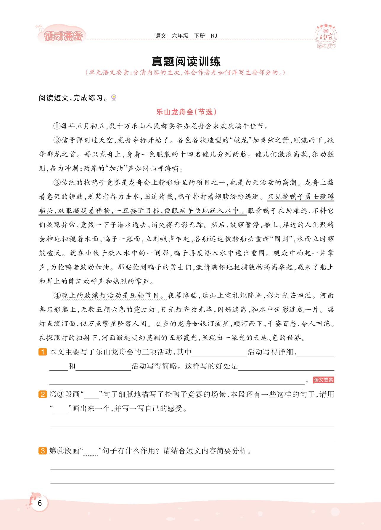 2022下册六年级语文人教版 第一单元 民风民俗——真题阅读训练