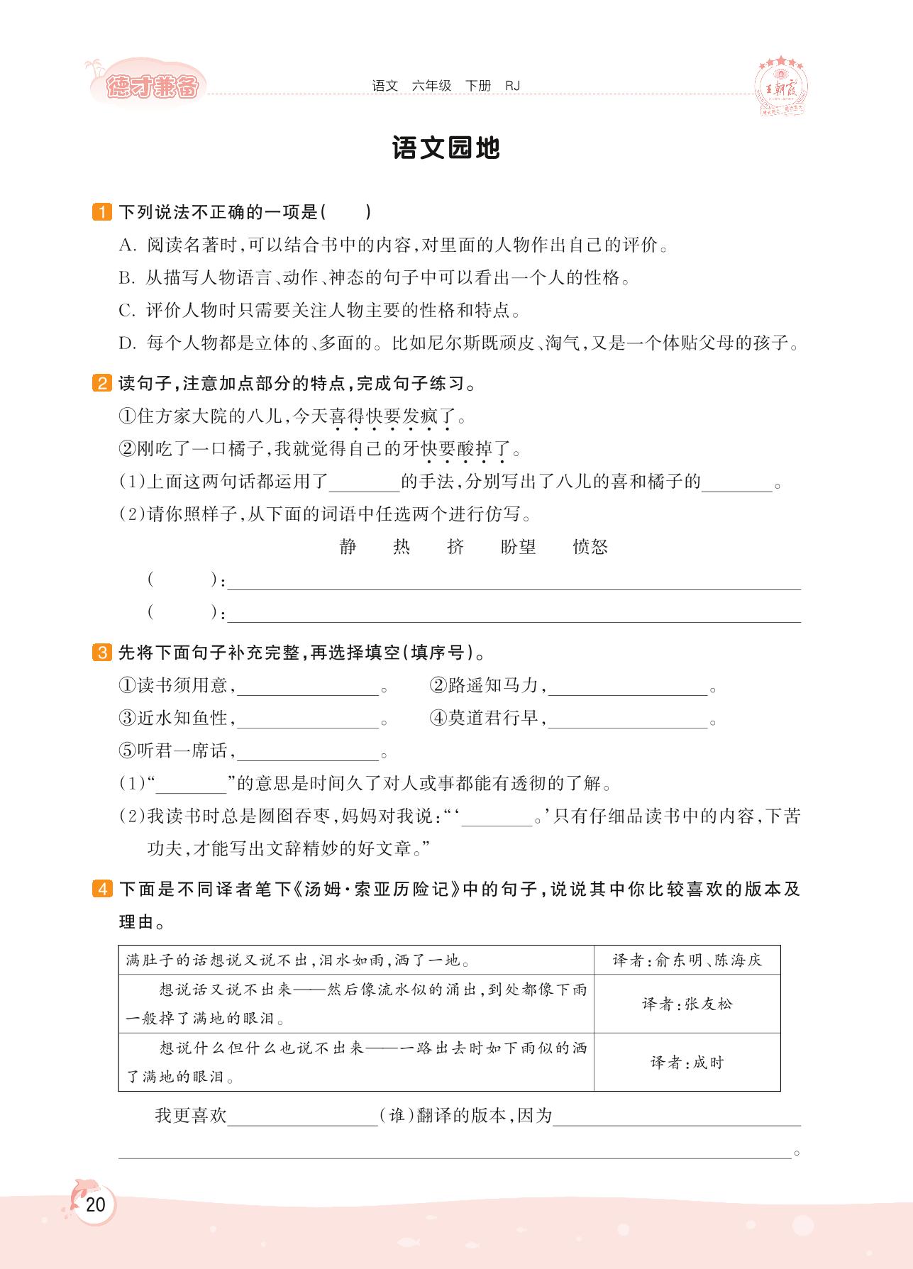 2022下册六年级语文人教版 第二单元 外国文学名著——语文园地