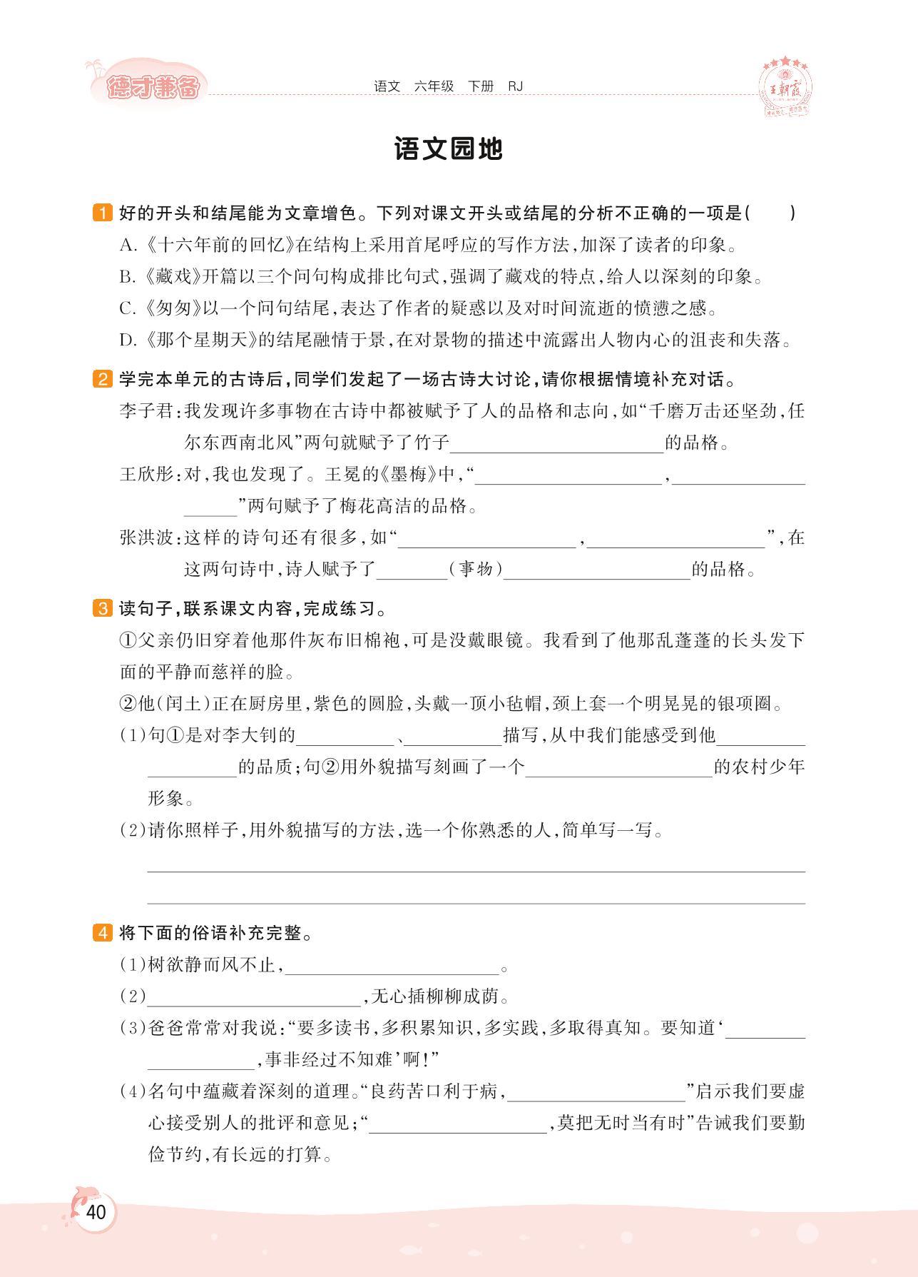 六年级语文人教版下册课时作业