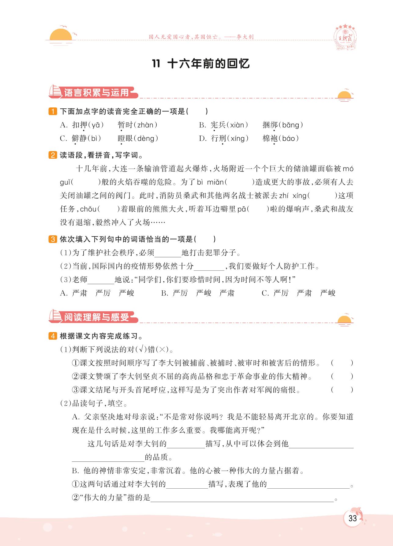 2022下册六年级语文人教版 第四单元 理想和信念——11 十六年前的回忆