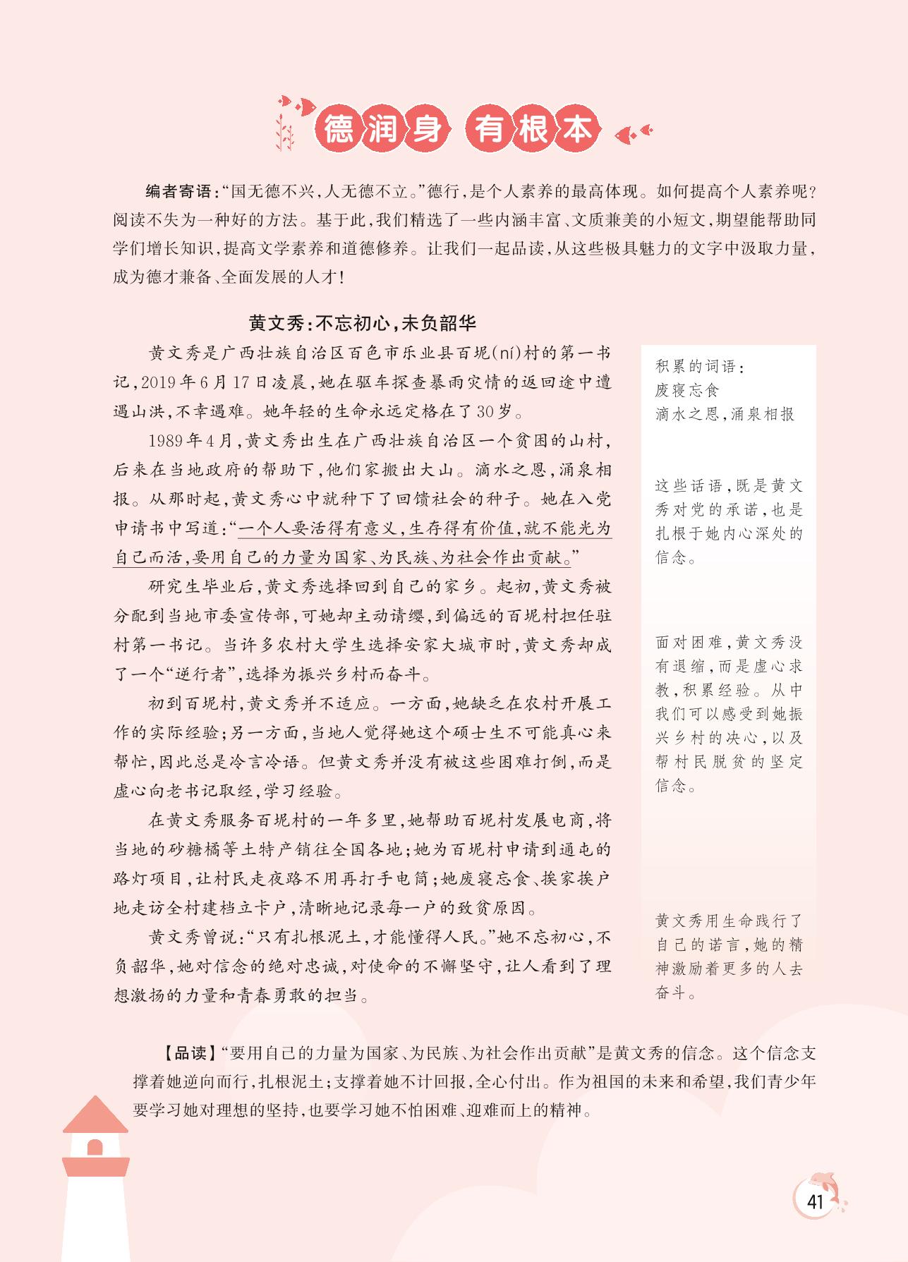 2022下册六年级语文人教版 第四单元 理想和信念——德润身 有根本